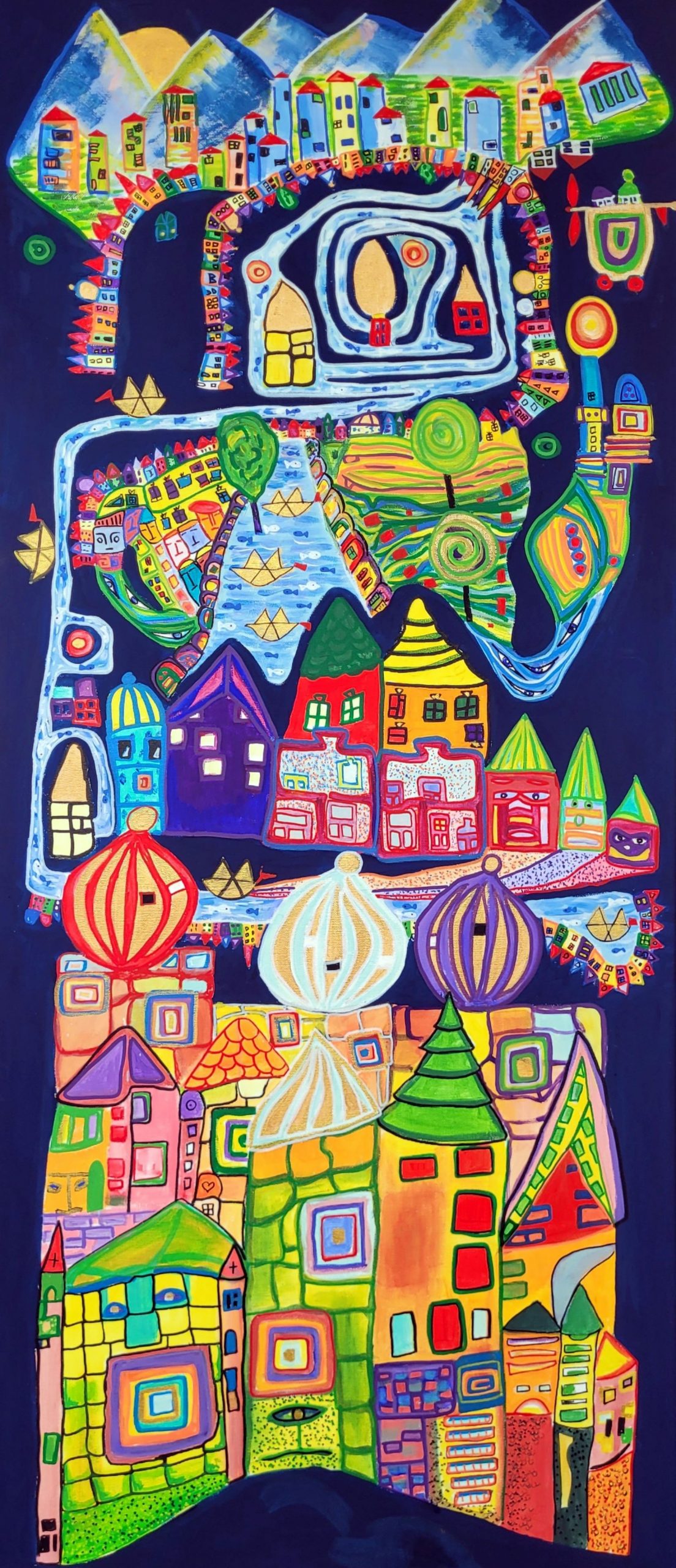 Acryl mit Blattgold auf 2 Leinwand