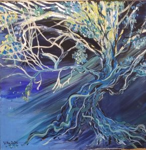 Acryl mit Silberblatt auf Leinwand